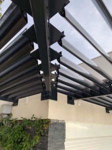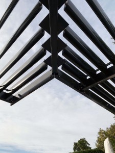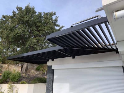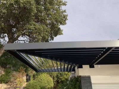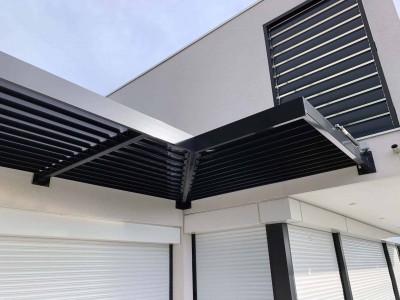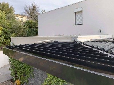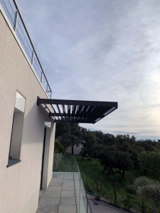 4 mai 2022Création : Brise-soleil horizontal motorisé fixe et orientable avec lames en aluminium thermolaqué, vis non apparentes.